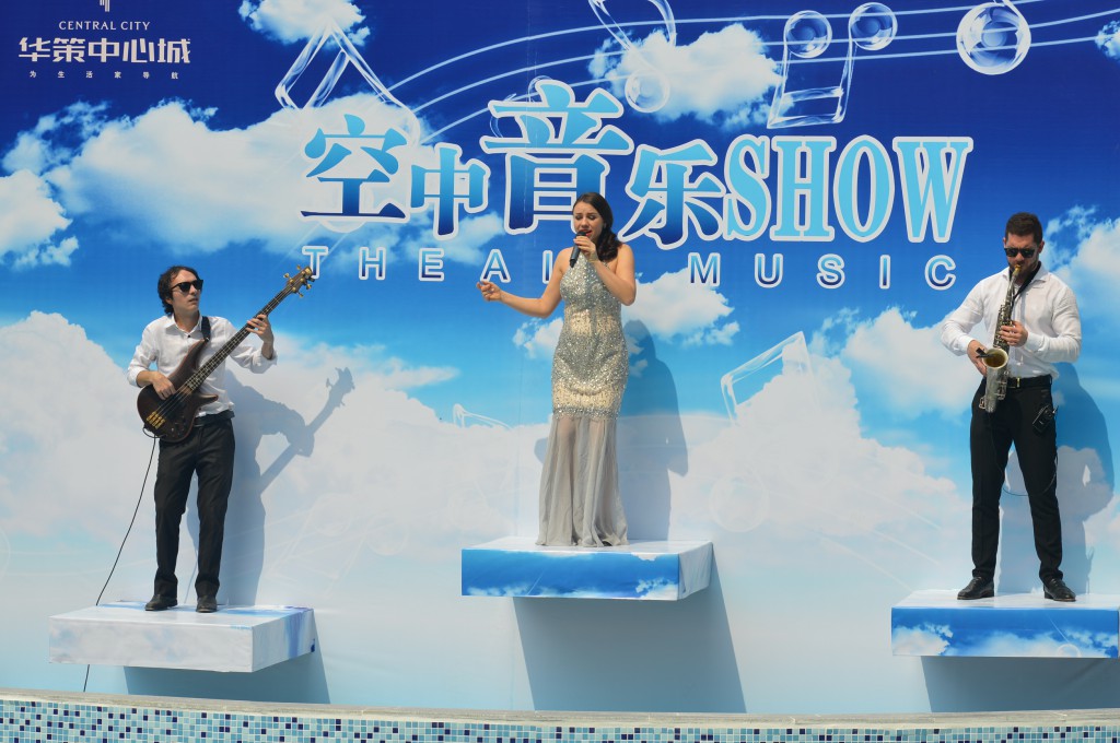 據悉,為了給購房者帶來更好的體驗,營銷中心特地邀請俄羅斯樂隊在泳池區域舉辦空中音樂show,利用立體空間舞臺現場演奏出絕佳的音樂效果,并在泳池邊設立雞尾酒吧臺,力求營造出一種輕松愉悅的休閑氛圍,向購房者展示項目在園林景觀建設上的匠心獨運。