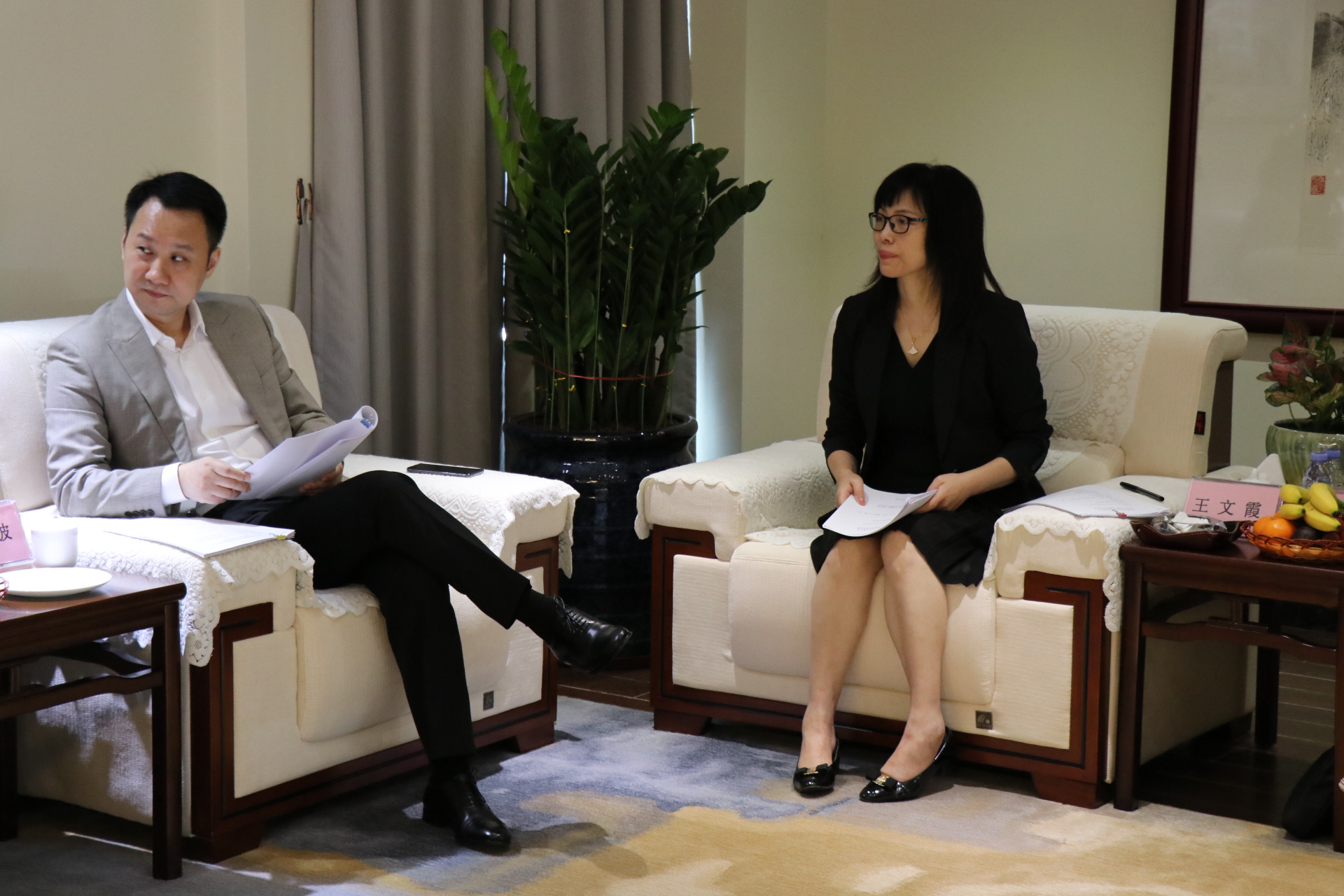 珠海先貿公司董事李朝波(左一)、董事長王文霞(右一)