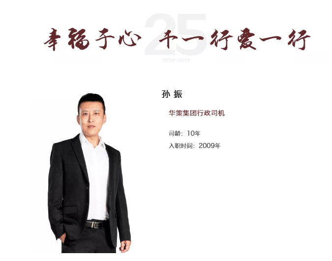 雖然我在華策就是一個普通基層的員工,但是只要真誠地對待他人,他人就會報我以微笑。每次客人因為行政司機貼心周到的服務露出會心一笑的時候,就是我最開心的時候,這也是我工作的最大動力。