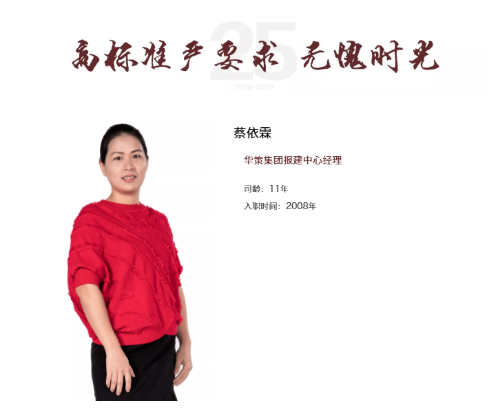 我2004年5月加入了華策集團,算得上是集團的一名“老員工”,我見證了華策近年來的重大歷史變革和跨越。一路走來,感謝集團領導給予的指導、信任,我會盡自己最大的努力把工作做好做細,在“學習”和“思考”中完善自身不足,努力以實際行動向集團董事局遞交滿意的答卷!”