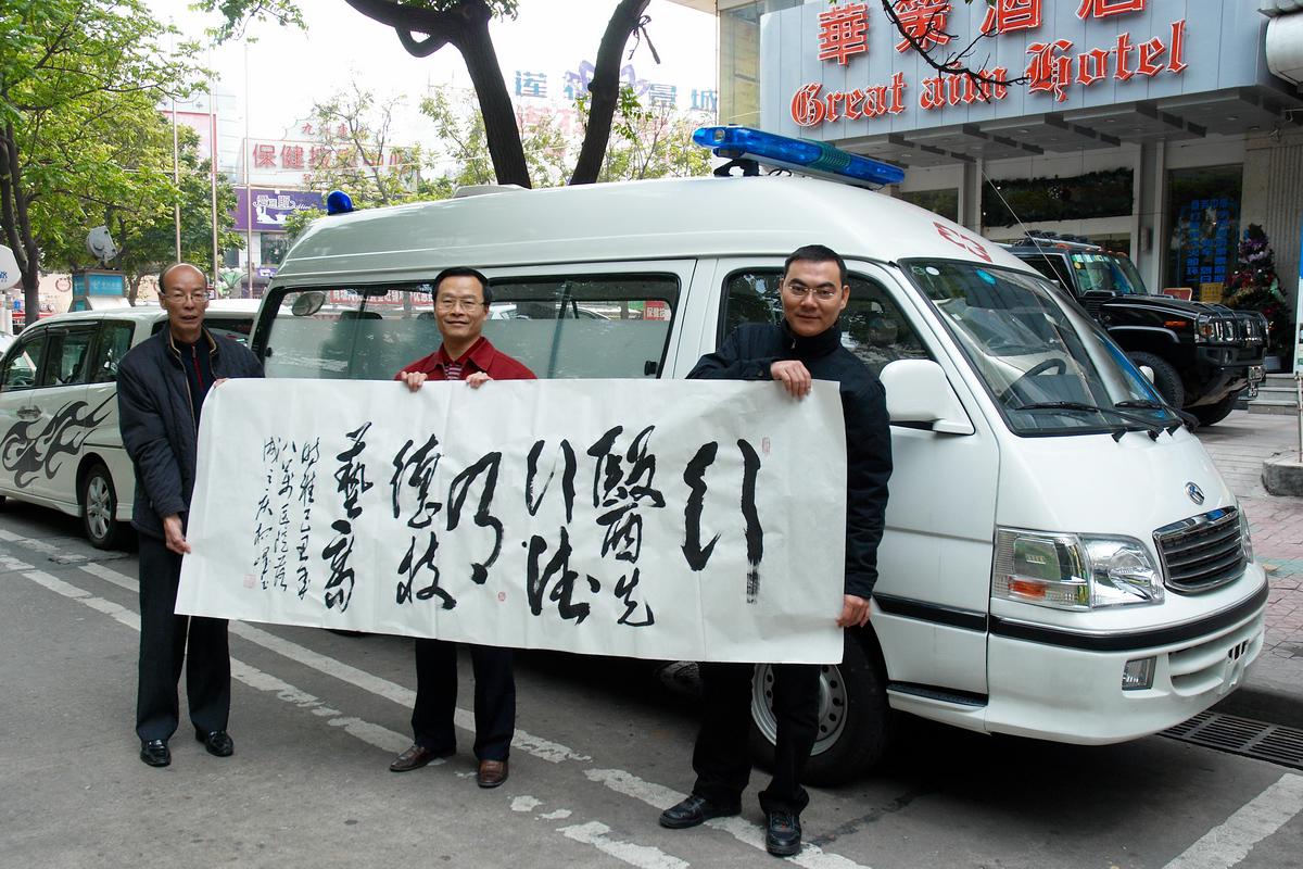 2009年12月21號(hào)華策集團(tuán)向陸豐市八萬鎮(zhèn)捐贈(zèng)救護(hù)車一臺(tái)。