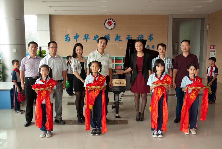 2011年9月30日,對于中山市實驗小學藍波灣學校的師生來說是一個非常難忘和值得慶賀的日子。下午兩點整,一臺滿載著集團深情厚誼的大貨車緩緩駛進校園,幾名工作人員小心翼翼地從車上卸下一臺嶄新的雅馬哈三角鋼琴,并迅速安放在教學樓大廳中央。頓時,大廳蓬蓽生輝,前來迎接的師生掌聲雷動,喜悅與感激綻放在每一張笑臉。集團行政總監趙日云代表楊峰董事長出席捐贈儀式,并接受了藍波灣學校回贈的水晶紀念碑。在熱烈的氣氛中,李乾等師生代表還即興作了現場表演,悠揚的琴聲久久回響在藍波灣畔。中山華策置地公司總經理藍波灣學校理事長唐欽之、理事會成員楊家瓊、陳小燕、藍波灣學校徐銘侃常務副校長出席捐贈儀式并剪彩。